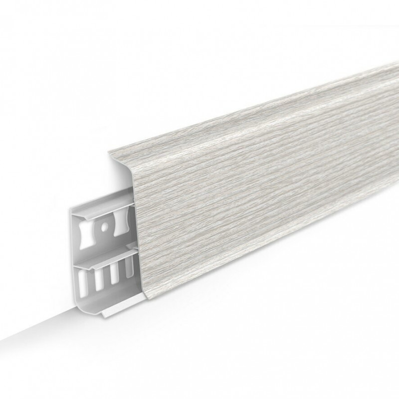 Стильная и функциональная форма профиля, удовлетворит утонченный вкус каждого покупателя. Благодаря простоте и элегантности, профиль пользуется огромной популярностью среди всемирных декораторов. Главные преимущества напольного плинтуса Открываешь, закрываешь и готово. Запатентованная уникальная конструкция позволяет монтировать и демонтировать плинтус без использования инструментов Больше места для размещения электропроводки. Существует возможность размещения большого количества проводов, в том числе после монтажа. Размещение дополнительной проводки возможно без использования инструментов. Покраска стен и оклеивание обоями без демонтажа. Благодаря простому снятию верхней части плинтуса, нет необходимости полного демонтажа плинтуса во время покраски стен или оклеивании стен обоями Маскировка электро и телевизионной проводки. Уникальная конструкция плинтуса даёт возможность раздельного размещения проводки. Сепаратор проводов внутри нашего плинтуса это важное преимущество нашей системы съемная панель. Провода напряжения нарушают передаваемый сигнал антенными проводами. Это имеет значительное влияние на качество изображения на экране или во время прослушивания музыки. Практически незаметное соединение всех элементов плинтуса. Благодаря современной технологии и высокому качеству производства плинтуса соединение элементов практически незаметно. Специальная двухслойная технология Плинтус, помимо слоя краски, дополнительно покрывается специальным лаком, благодаря чему его покрытие становится однородным, а это даёт возможность подобрать цвет плинтуса под цвет ламината, а кроме того это дополнительно защищает изделие от разного вида механических повреждений и вредного воздействия лучей УФ Эластичность плинтуса идеальное прилегание Благодаря эластичному материалу, плинтус идеально прилегает даже к неровностям стен и полов.